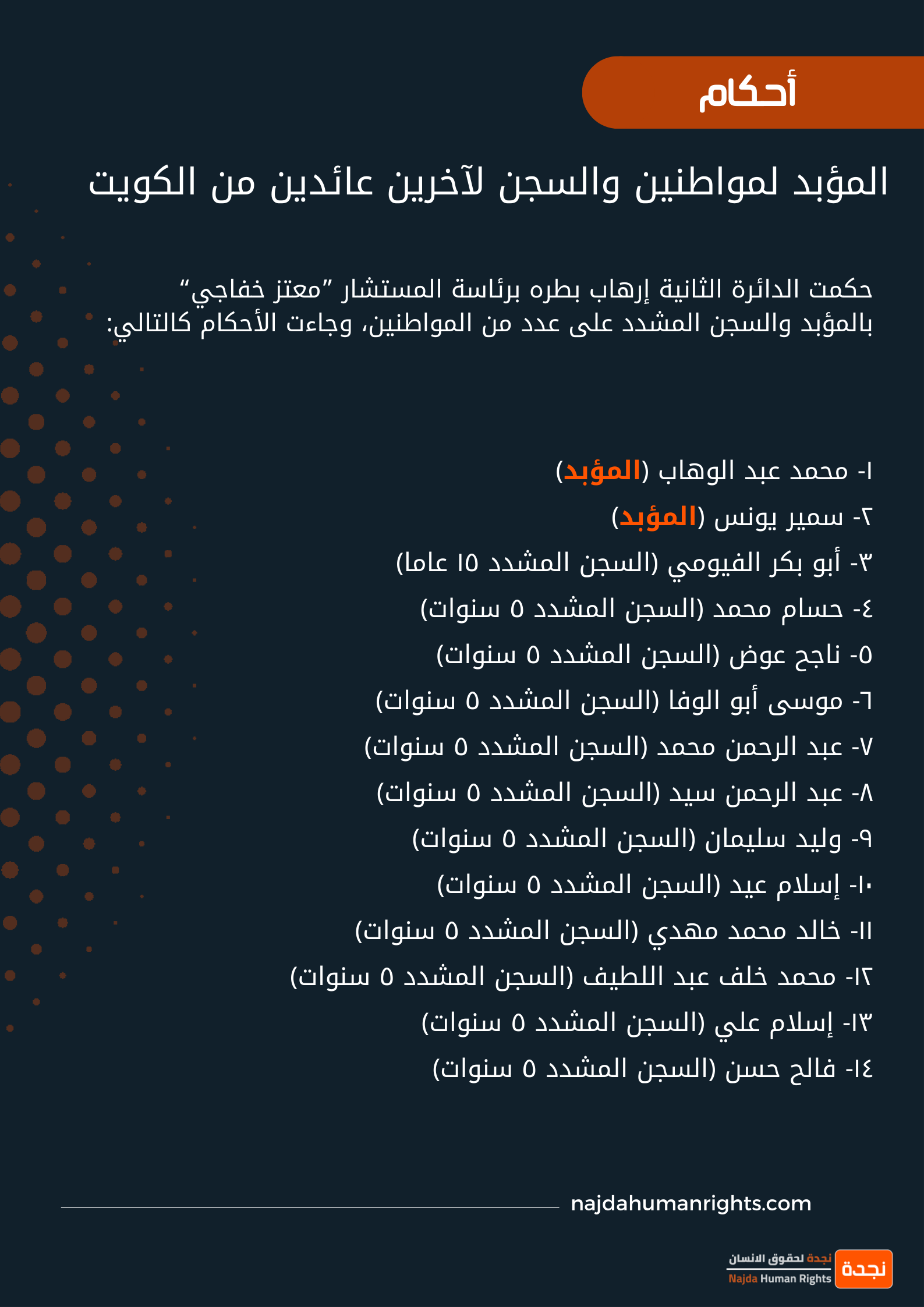 المؤبد لمواطنين والسجن لآخرين عائدين من الكويت