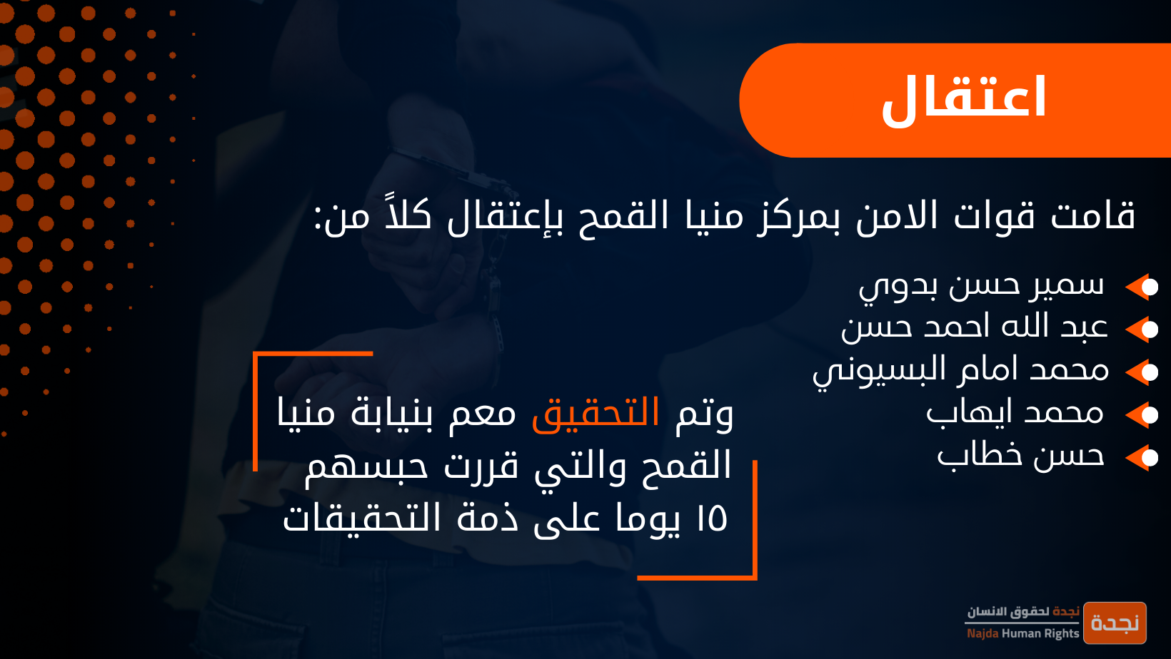 Minya al-Qamh merkezindeki güvenlik güçleri 5 kişiyi tutukladı, bunlar: