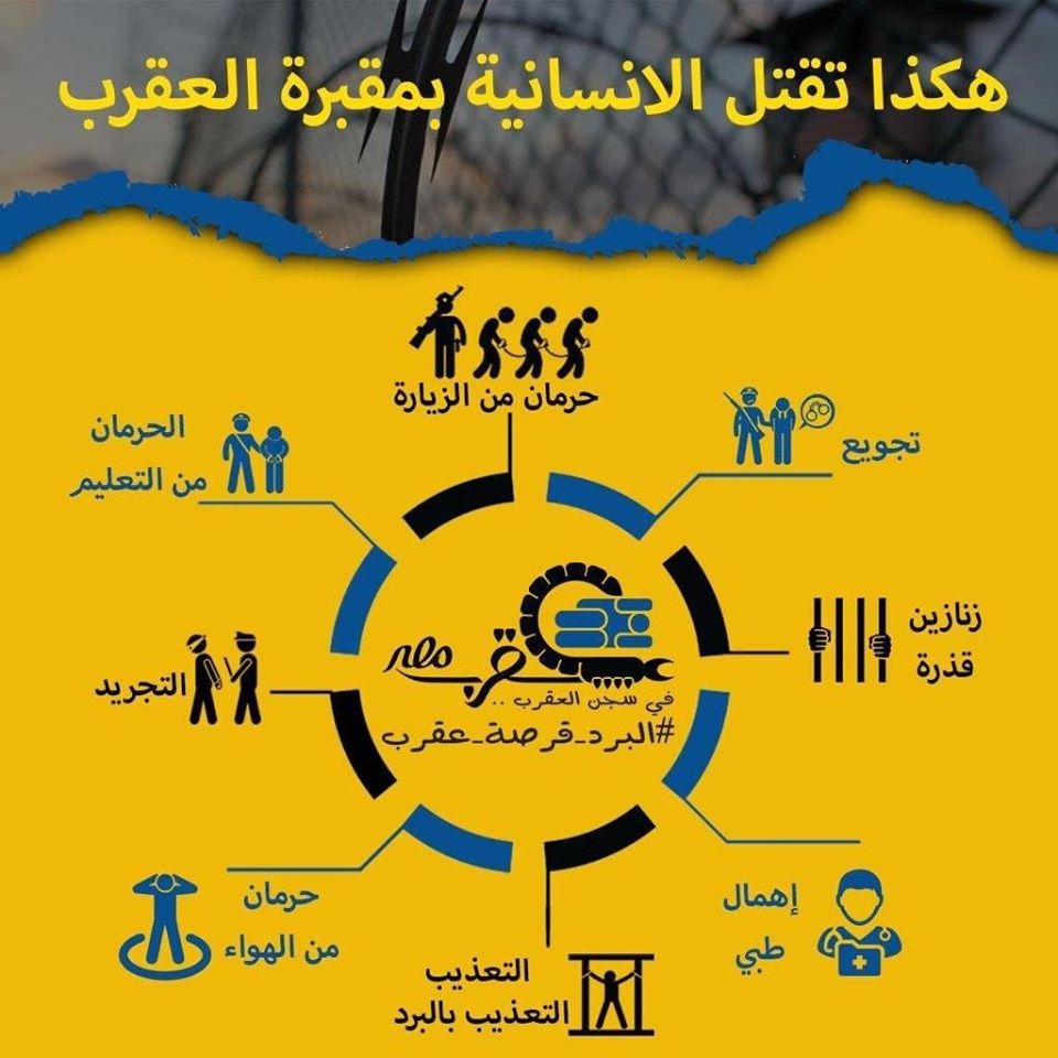 ٨٣٥ نزيل بسجن طره شديد الحراسه ٩٩٢ ( العقرب ) ١ يصارعون الموت من برد وجوع وحرمان من الرعاية الطبية وحبس انفرادي .